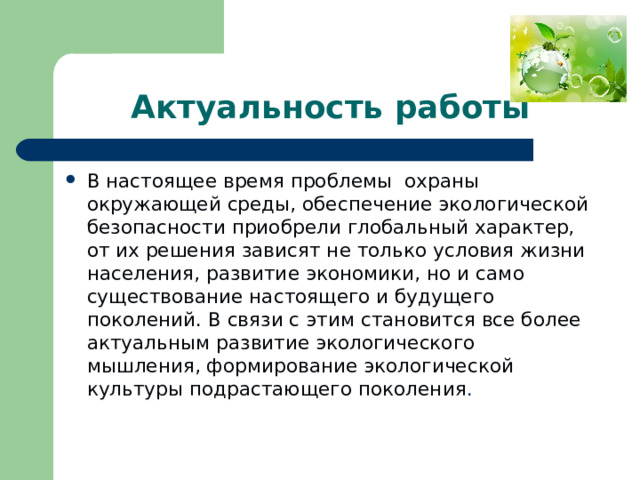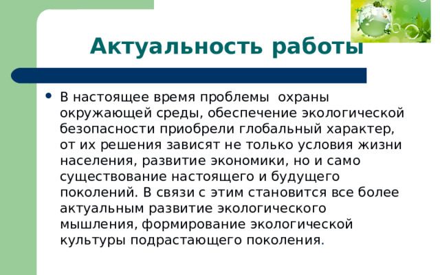 Создание экологической культуры и ценностей